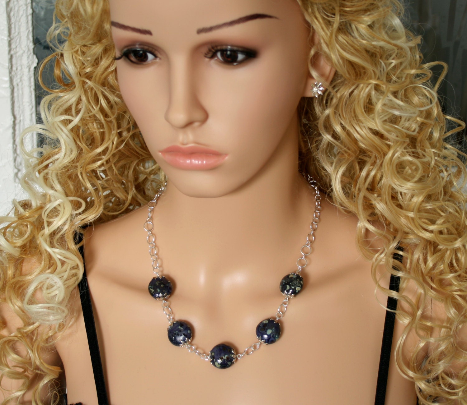 Traditionally hand made chain and catch, adorned with five original flame worked lampwork glass beads.